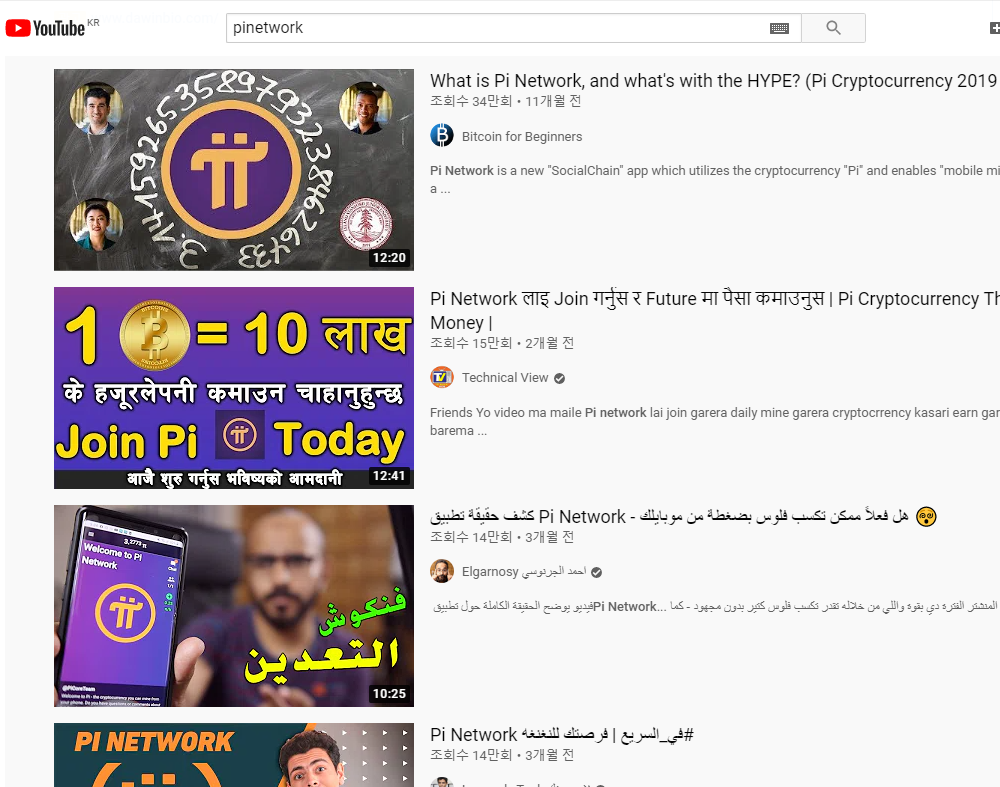 지금은 유튜브에서 Pi Network 만 검색해봐도 중동부터 동남아. 미국. 중국 등