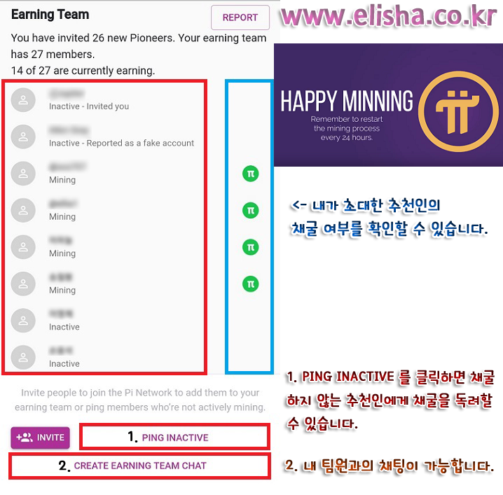 추천해준 친구나 지인 중에 현재 채굴을 하고 있는 친구 숫자에 따라 채굴 속도는 증가하니 채굴에 관심있는