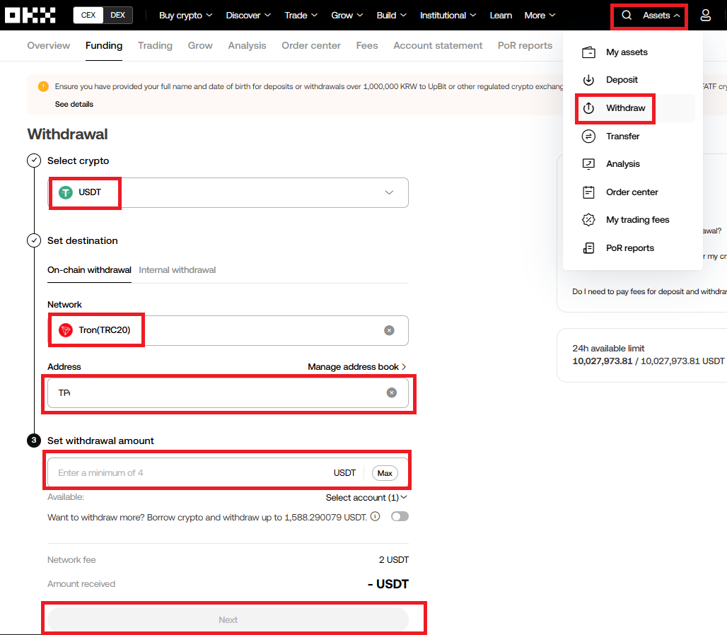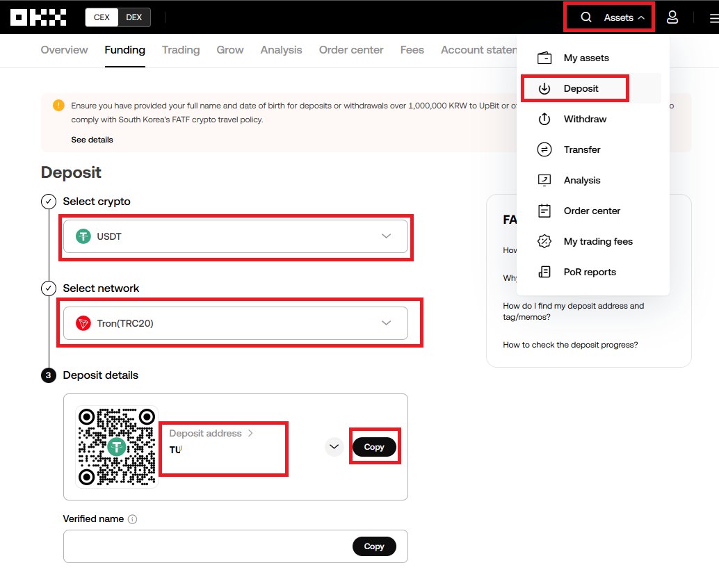 *** OKX거래소 내 테더 주소 확인 방법 ***